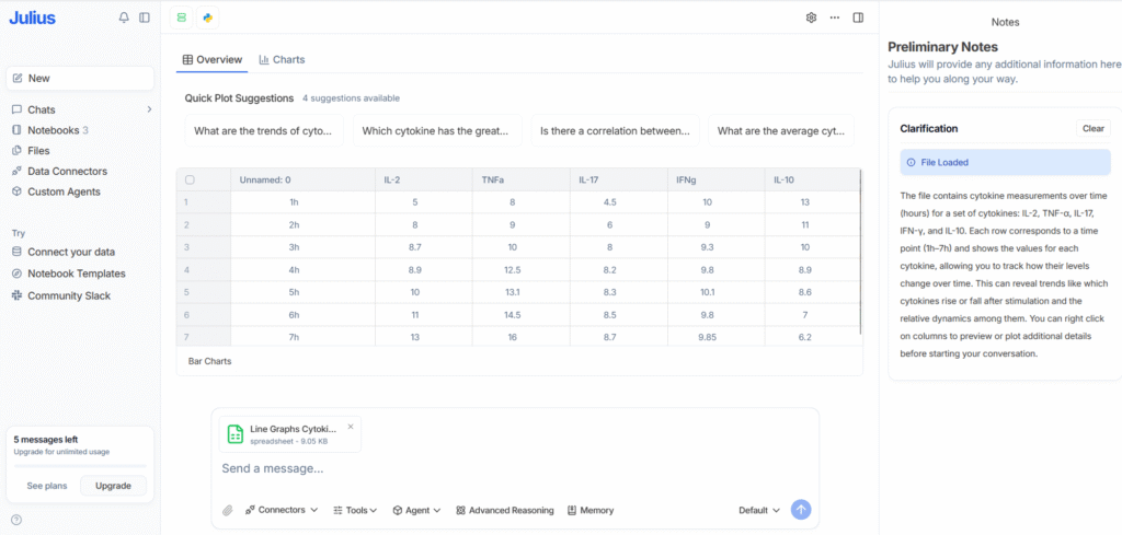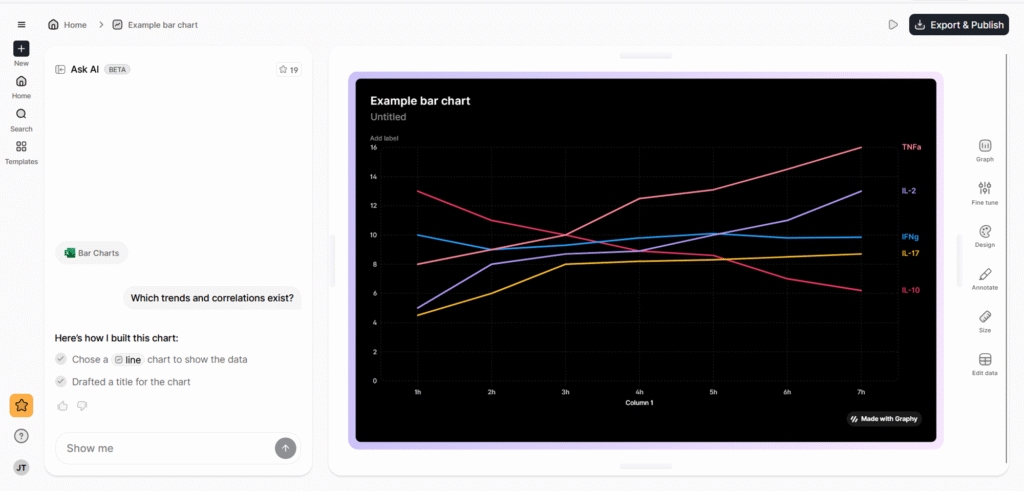 An AI for data analysis and visualization. You can upload datasets, ask questions in written form, and generate statistics, graphs, and insights without coding.