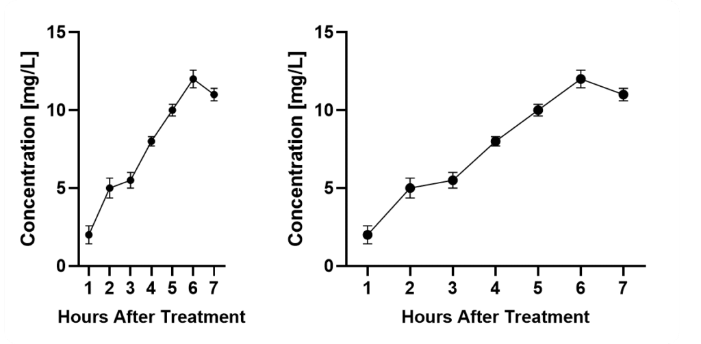 When it comes to curves, consider that the spacing of your x-axis has an important impact on the perceived slope of your graph. Again, there is no way around this. Also consider that the perception of your error bars will vary with the size of your graph. In both cases, mean values ± SD are displayed.